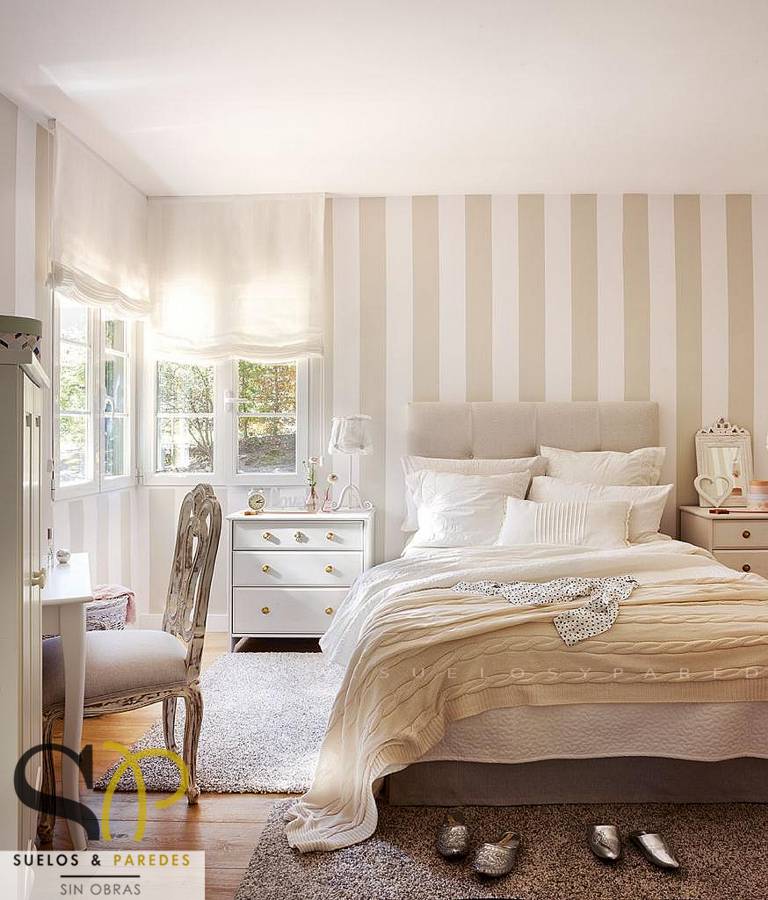 Dormitorio con resvestimiento vinílico en pared principal. Elegante y funcional