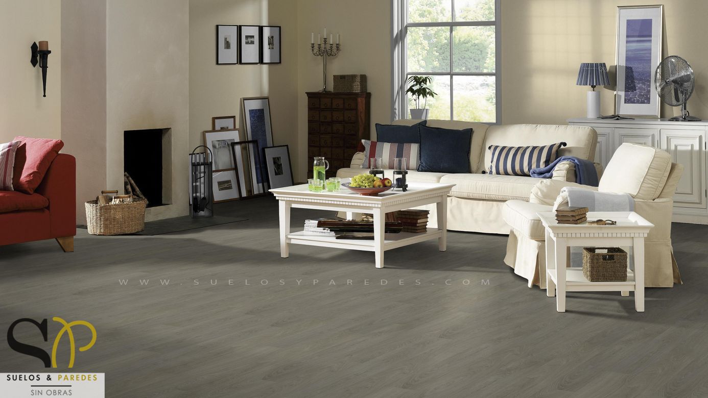 Suelo vinílico en tarima gris instalado en horas.