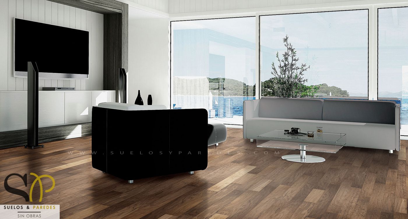 Pavimento vinilico aspecto tarima sin obras. Rápida y limpia instalación